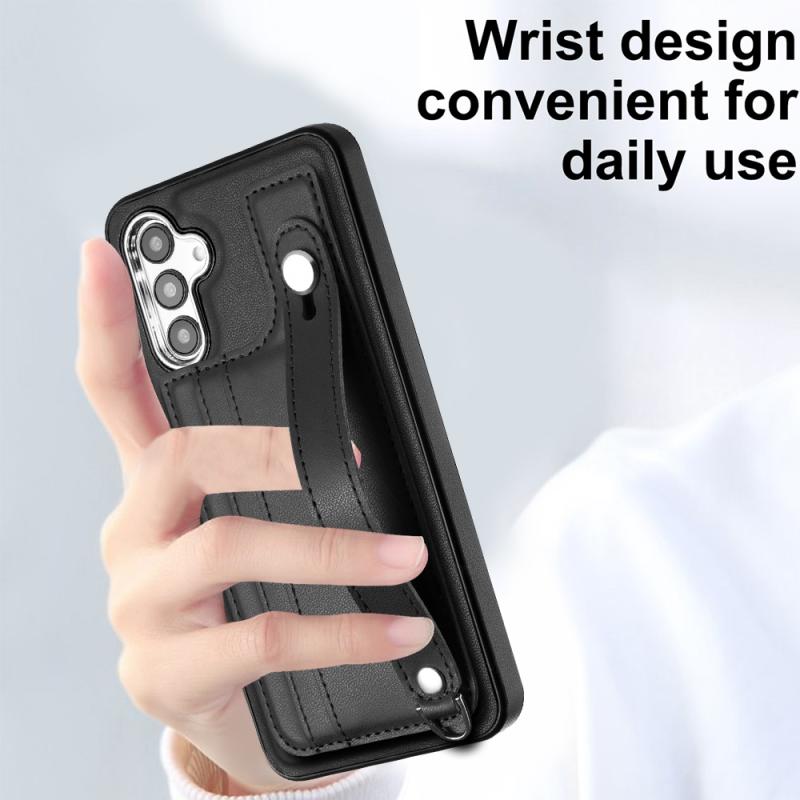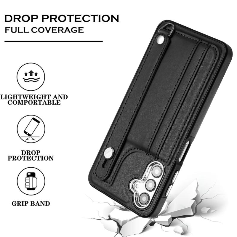 Θήκη κινητού τηλεφώνου από δέρμα ανθεκτική στις κρούσεις για Samsung Galaxy A13 5G / A04S / M13 5G με λουρί καρπού (Μαύρο)