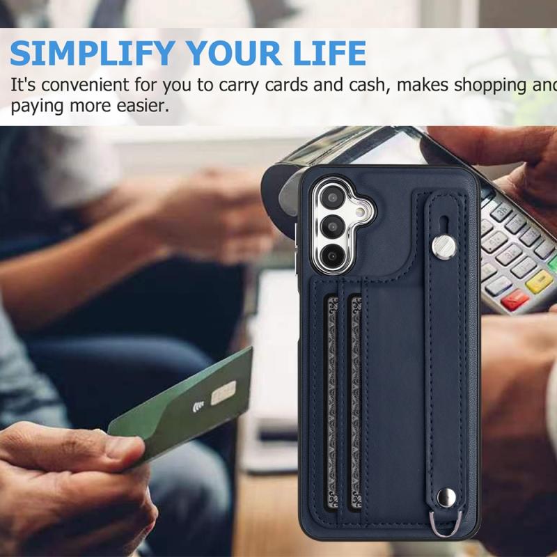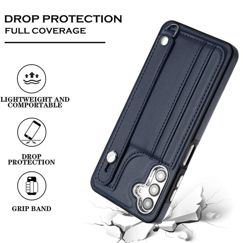 Θήκη κινητού τηλεφώνου από δέρμα ανθεκτική στις κρούσεις για Samsung Galaxy A13 5G / A04S / M13 5G με λουρί καρπού (Μπλε)