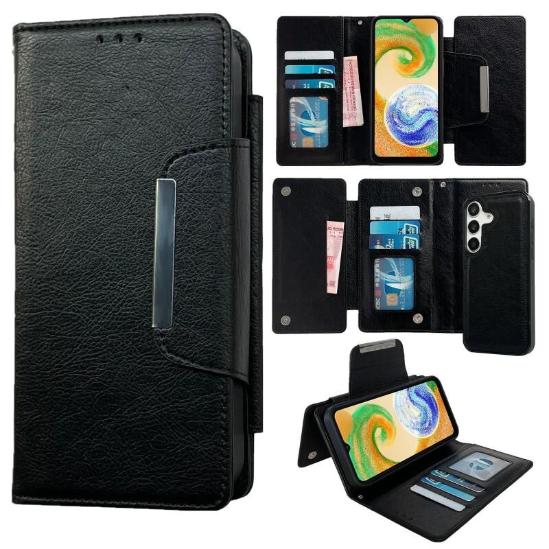 Για Samsung Galaxy A13 5G / A04s Πολυλειτουργική 7-κάρτα πορτοφόλι δερμάτινη θήκη τηλεφώνου (μαύρο)