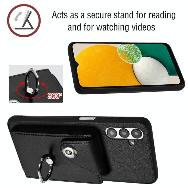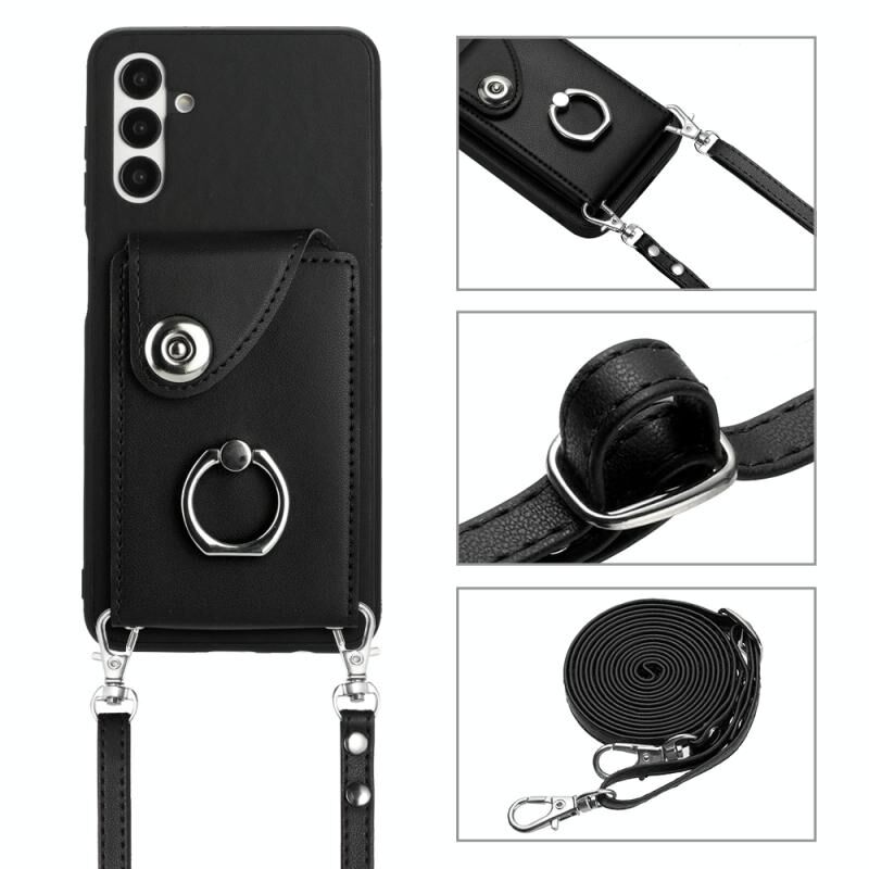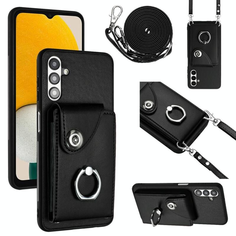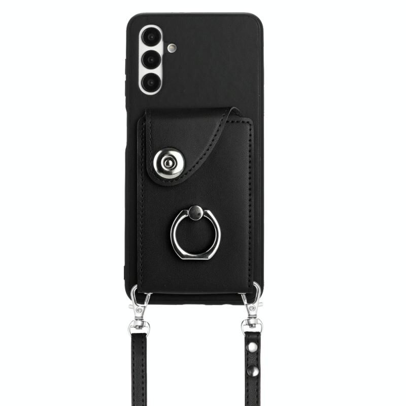 Για Samsung Galaxy A13 5G / A04s Organ Card Bag τσάντα δαχτυλίδι κάτοχος θήκη τηλεφώνου με μακρύ κορδόνι (Μαύρο)