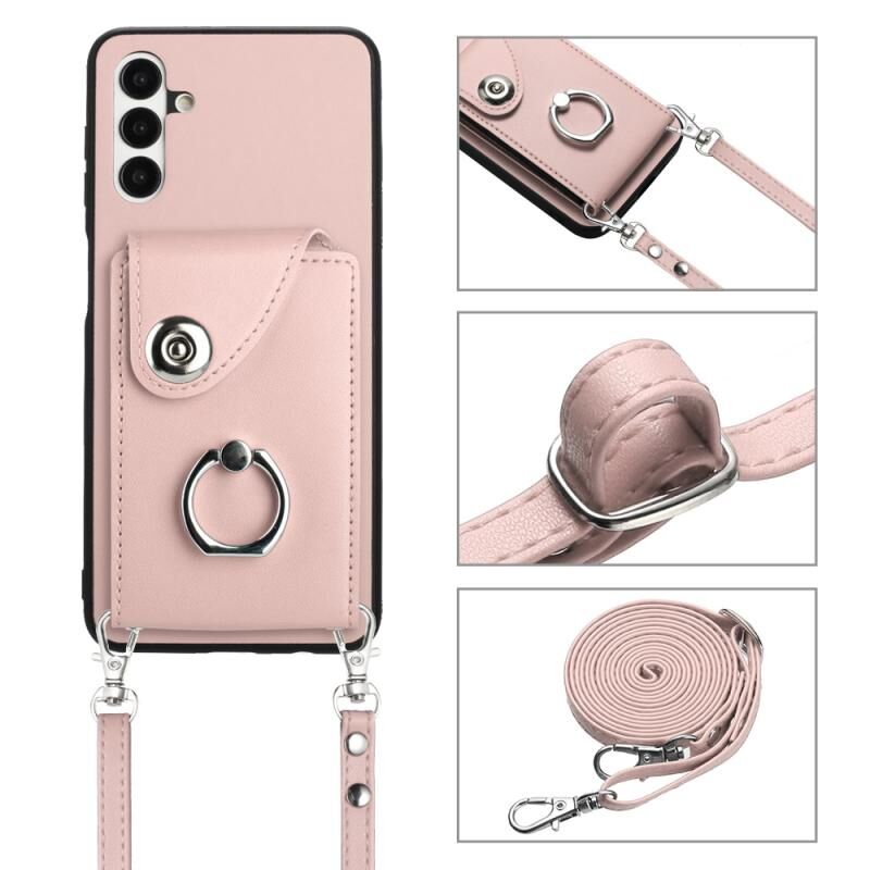 Για το Samsung Galaxy A13 5G / A04s Organ Card Bag τσάντα δαχτυλίδι κάτοχος τηλέφωνο υπόθεση με μακρύ κορδόνι (ρόζ)