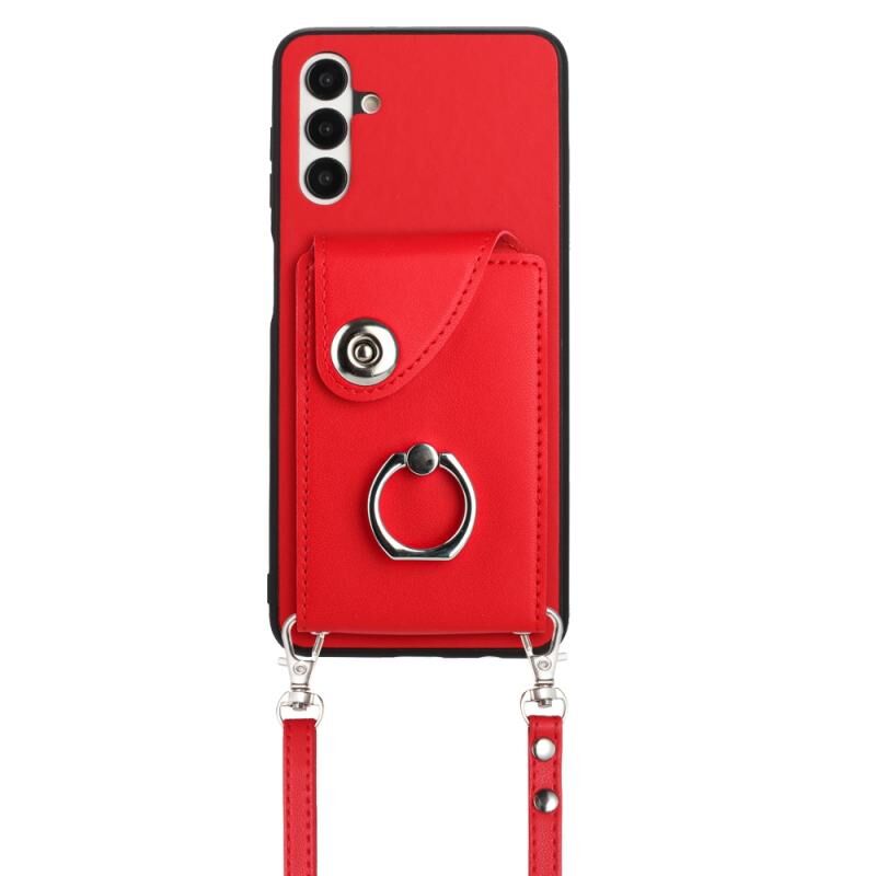 Για Samsung Galaxy A13 5G / A04s Οργανική κάρτα τσάντα τσάντα δαχτυλίδι κάτοχος υπόθεση τηλεφώνου με μακρύ κορδόνι (κόκκινο)