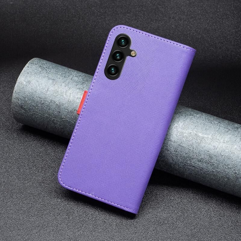Για Samsung Galaxy A13 5G BF13 χρώμα ταιριάζει με σταυρό υφή δερμάτινη θήκη τηλεφώνου (μωβ)