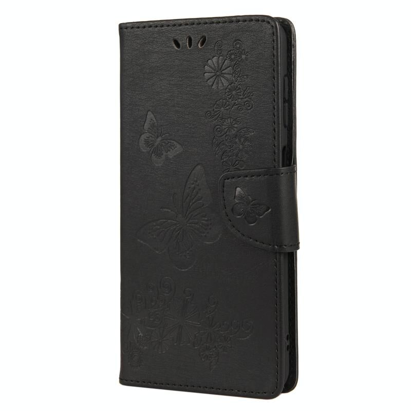 Θήκη τηλεφώνου Samsung Galaxy A13 5G, δερμάτινη οριζόντια με ανάγλυφο σχέδιο πεταλούδας, με θήκη για κάρτες & στήριξη (Μαύρο)