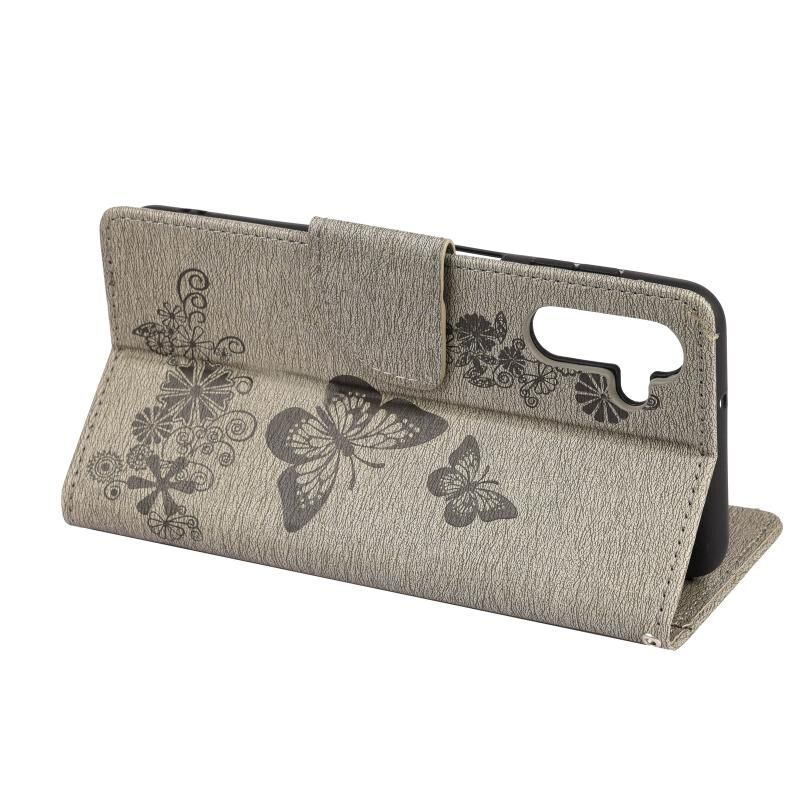 Θήκη τηλεφώνου Samsung Galaxy A13 5G, δερμάτινη οριζόντια με ανάγλυφο σχέδιο πεταλούδας, με θήκη για κάρτες & στήριξη (Μαύρο)