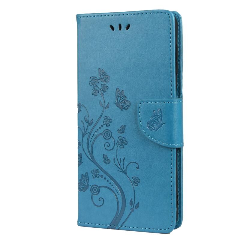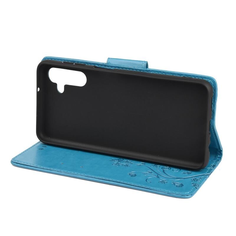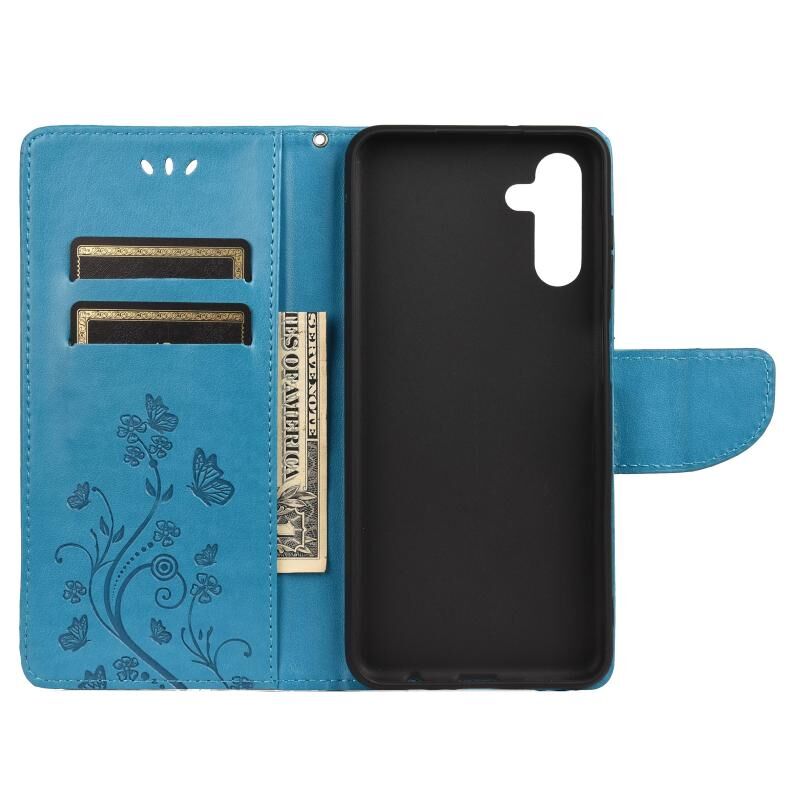 Για Samsung Galaxy A13 5G πεταλούδα λουλούδι μοτίβο οριζόντια Flip δέρμα τηλέφωνο υπόθεση με υποδοχή για κάρτες & κάτοχος (μπλε)