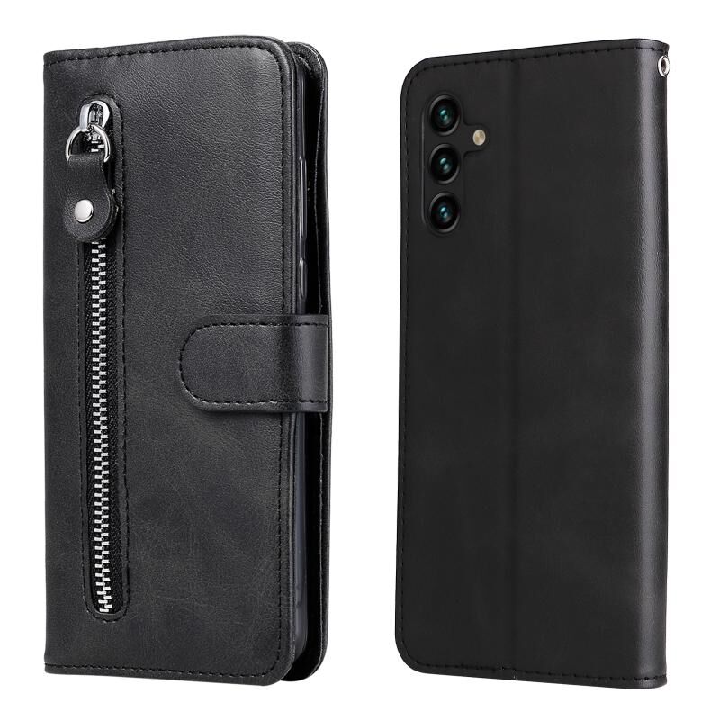 Για Samsung Galaxy A13 5G 5G Calf υφή φερμουάρ οριζόντια Flip δέρμα τηλέφωνο υπόθεση (μαύρο)