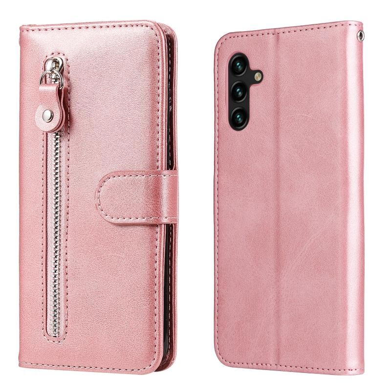 Για το Samsung Galaxy A13 5G 5G Calf υφή φερμουάρ οριζόντια Flip δέρμα τηλέφωνο υπόθεση (Rose Gold)