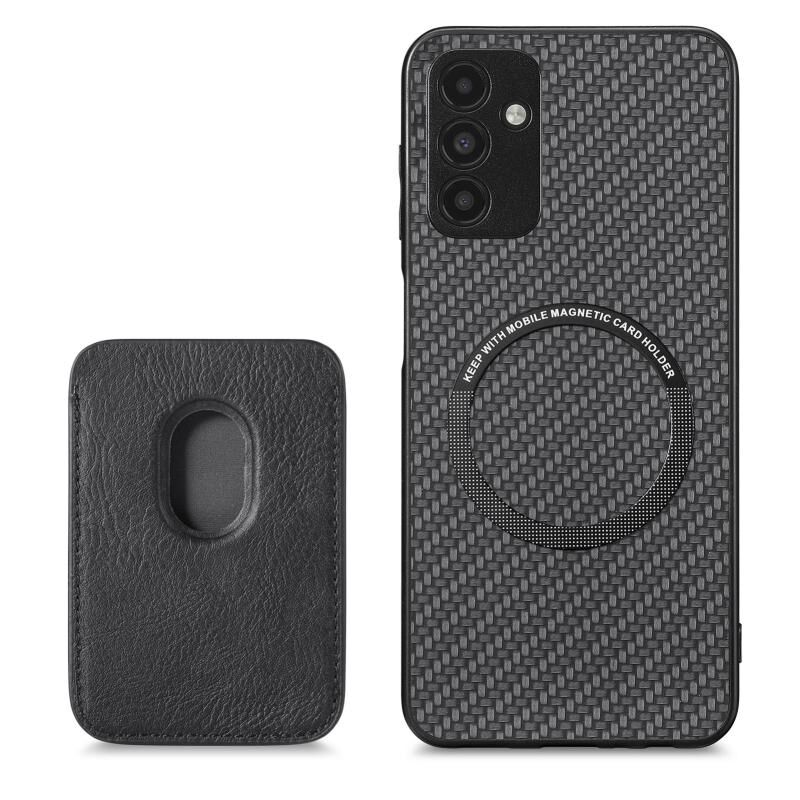 Θήκη τηλεφώνου Samsung Galaxy A13 5G από ανθρακονήματα και δέρμα με κάρτες και μαγνητική σύνδεση MagSafe (Μαύρο)