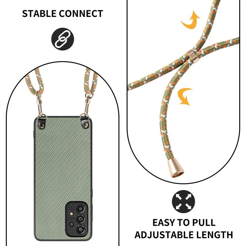 Για Samsung Galaxy A13 5G άνθρακα ινών 5G υφή δέρμα πίσω κάλυψη υπόθεση τηλεφώνου με λουράκι σταυρού (πράσινο)