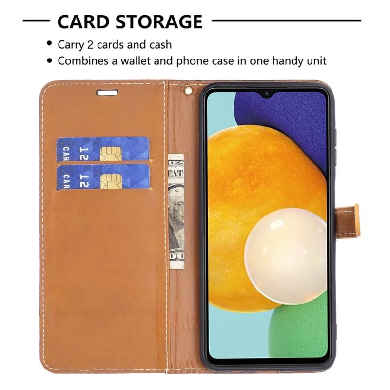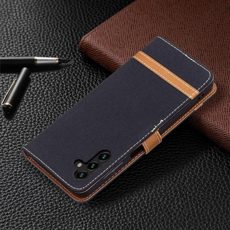 Για Samsung Galaxy A13 5G Χρώμα ταιριάζουν Denim Υφή δερμάτινη θήκη με θήκη & υποδοχές για κάρτες & πορτοφόλι & κορδόνι (Μαύρο)