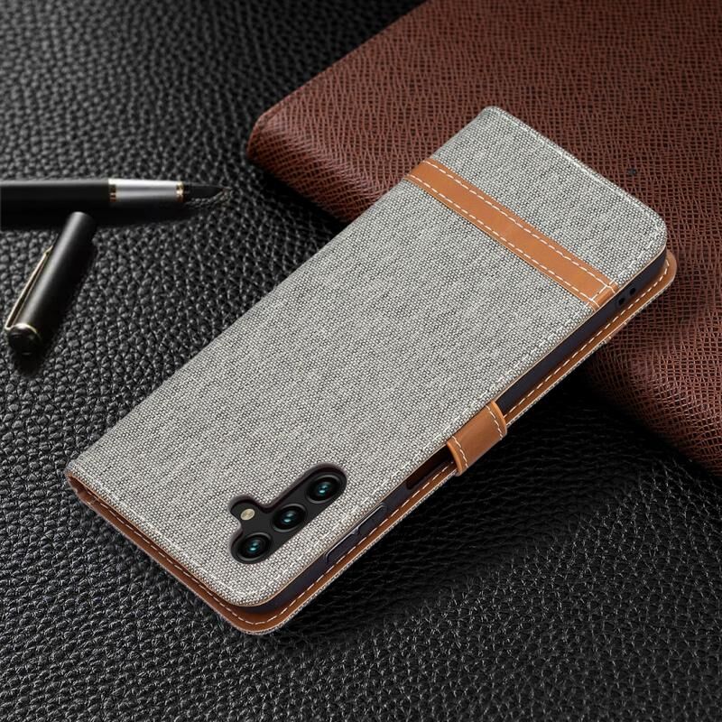 Για Samsung Galaxy A13 5G Χρώμα Matching Denim Υφή δερμάτινη θήκη με θήκη & υποδοχές για κάρτες & πορτοφόλι & κορδόνι (γκρι)