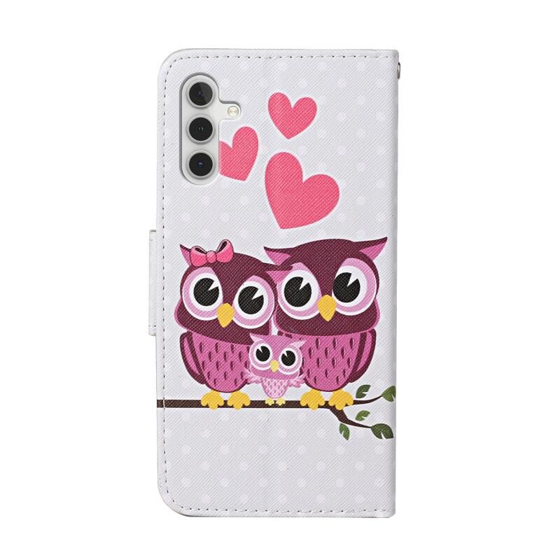 Θήκη δέρματος με σχέδιο πολύχρωμης ζωγραφικής και πτυσσόμενο μηχανισμό για Samsung Galaxy A13 5G (Οικογένεια Κουκουβάγιας)