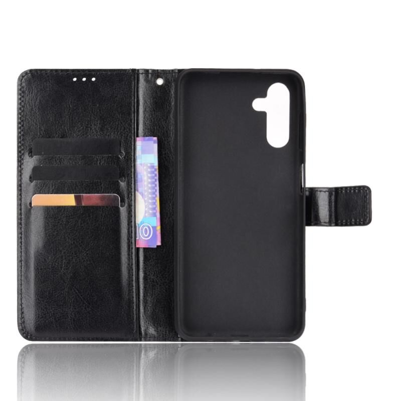 Για Samsung Galaxy A13 5G Crazy Horse Υφή οριζόντια Flip τηλέφωνο δερμάτινη θήκη με θήκη & υποδοχές για κάρτες & κορδόνι (Μαύρο)