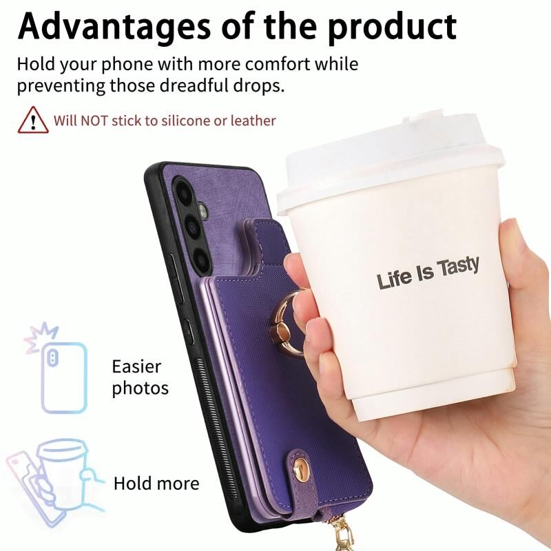 Για Samsung Galaxy A13 5G Cross Δερμάτινο δαχτυλίδι κάθετη φερμουάρ πορτοφόλι πίσω υπόθεση τηλεφώνου (μωβ)