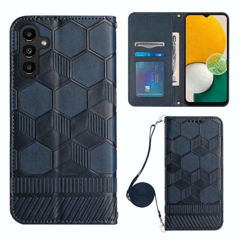 Θήκη κινητού τηλεφώνου Samsung Galaxy A13 5G, τύπου τσάντας, με υφή ποδοσφαίρου, μαγνητική, από PU δέρμα (Σκούρο μπλε)
