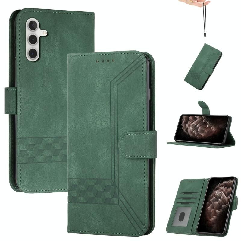For Samsung Galaxy A13 5G Cubic Skin Feel Flip Leather Phone Case(Dark Green)