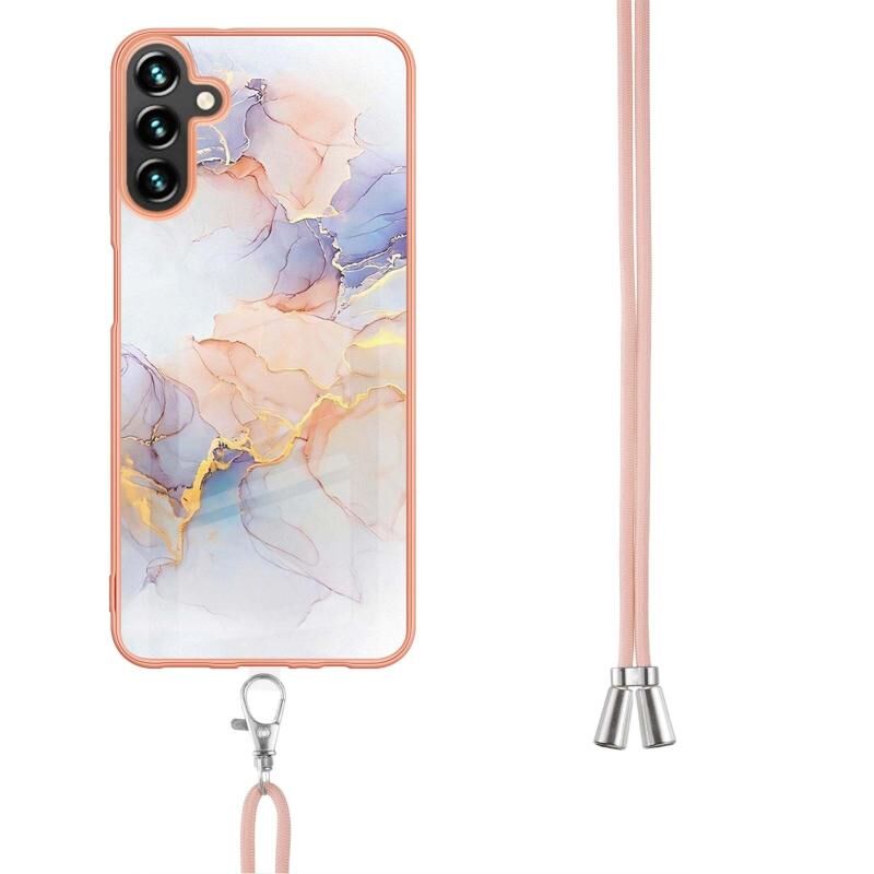 Θήκη κινητού τηλεφώνου Samsung Galaxy A13 5G με επιμετάλλωση IMD TPU και κορδόνι (Λευκό Μάρμαρο)