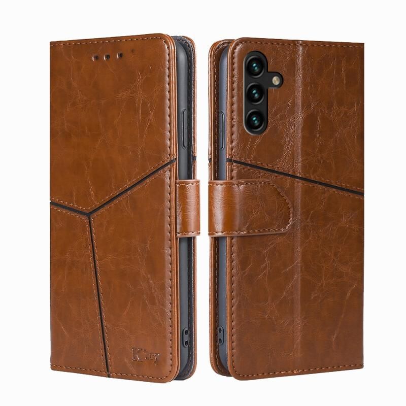 Για Samsung Galaxy A13 5G Γεωμετρική ραφή οριζόντια Flip δερμάτινη θήκη με θήκη & υποδοχές για κάρτες & πορτοφόλι (ανοιχτό καφέ)