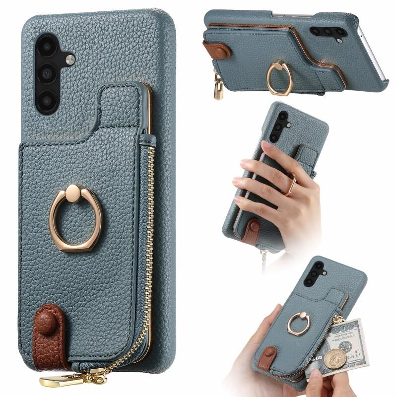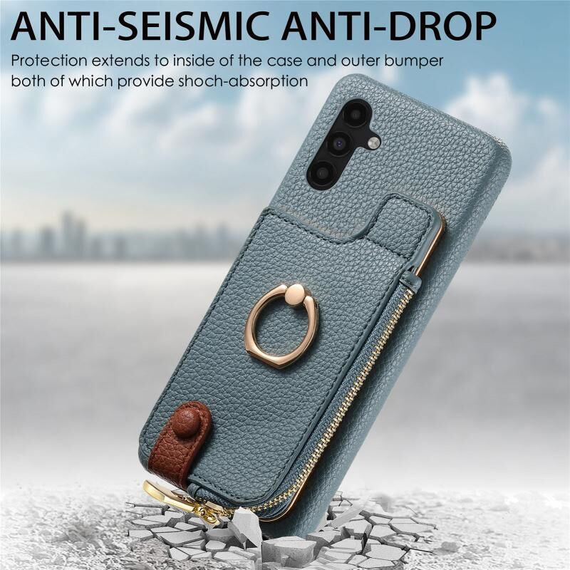 Για Samsung Galaxy A13 5G Litchi δέρμα λάδι Edge δαχτυλίδι φερμουάρ πορτοφόλι πίσω υπόθεση τηλεφώνου (μπλε)