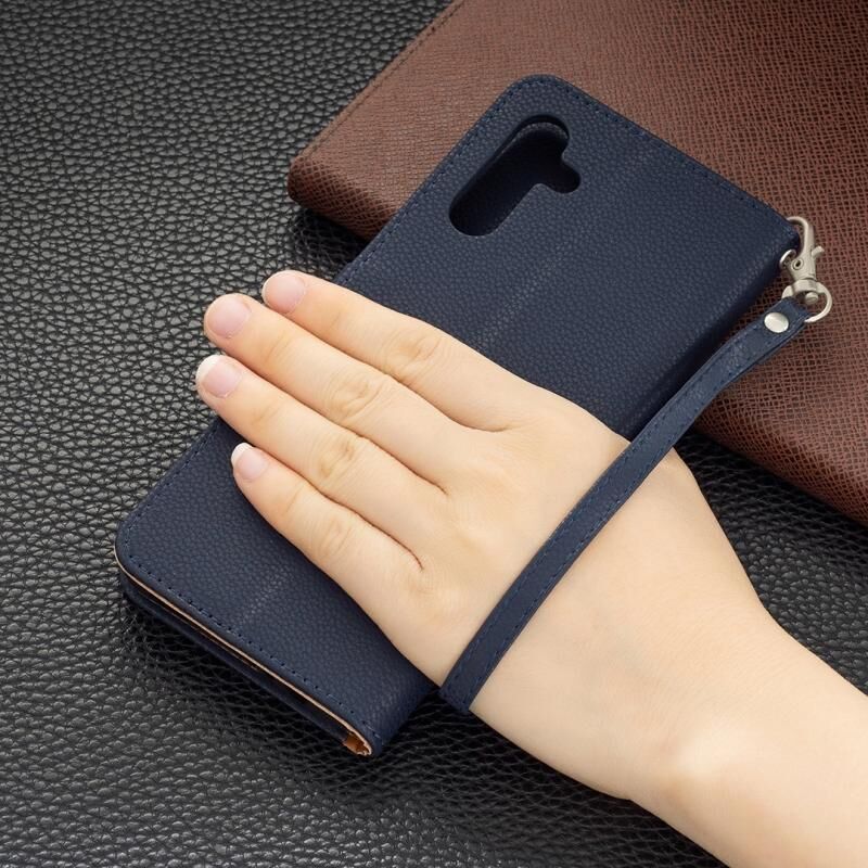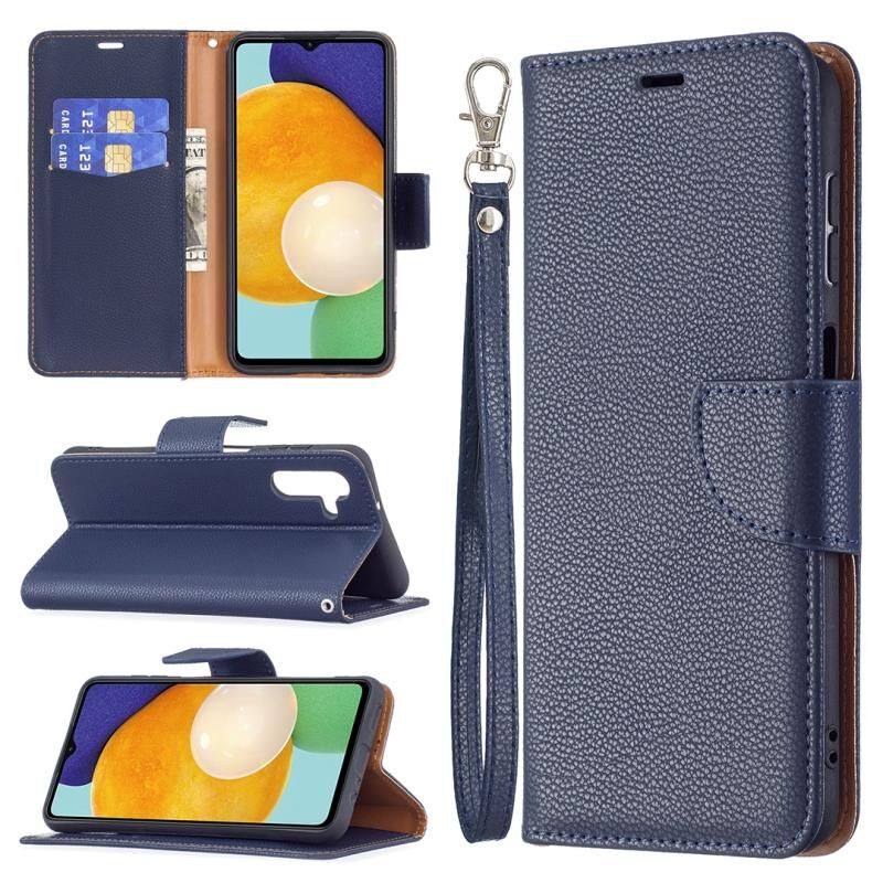 Για Samsung Galaxy A13 5G Litchi υφή καθαρό χρώμα οριζόντια Flip δερμάτινη θήκη τηλεφώνου με θήκη & υποδοχές για κάρτες & πορτοφόλι & κορδόνι (σκούρο μπλε)