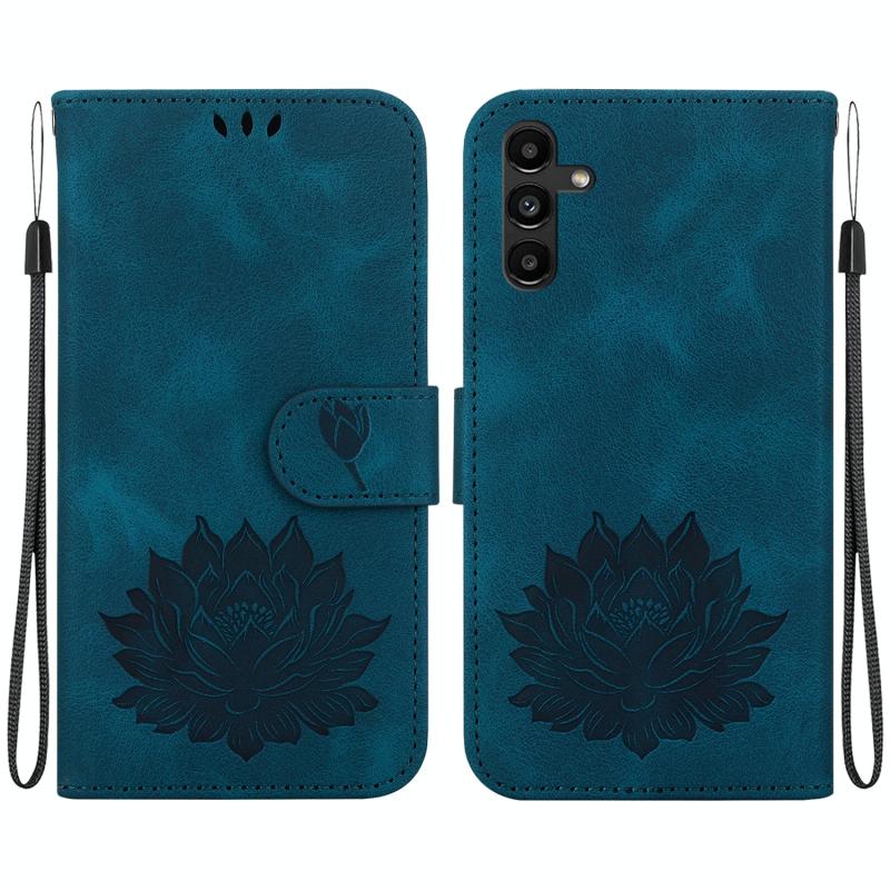 For Samsung Galaxy A13 5G Lotus Embossed Leather Phone Case(Dark Blue)