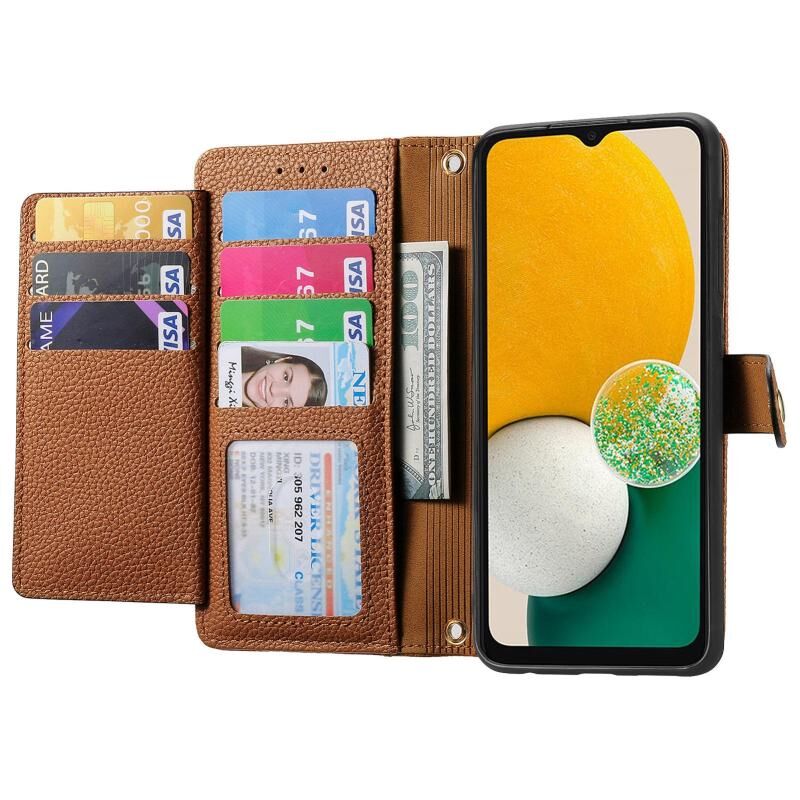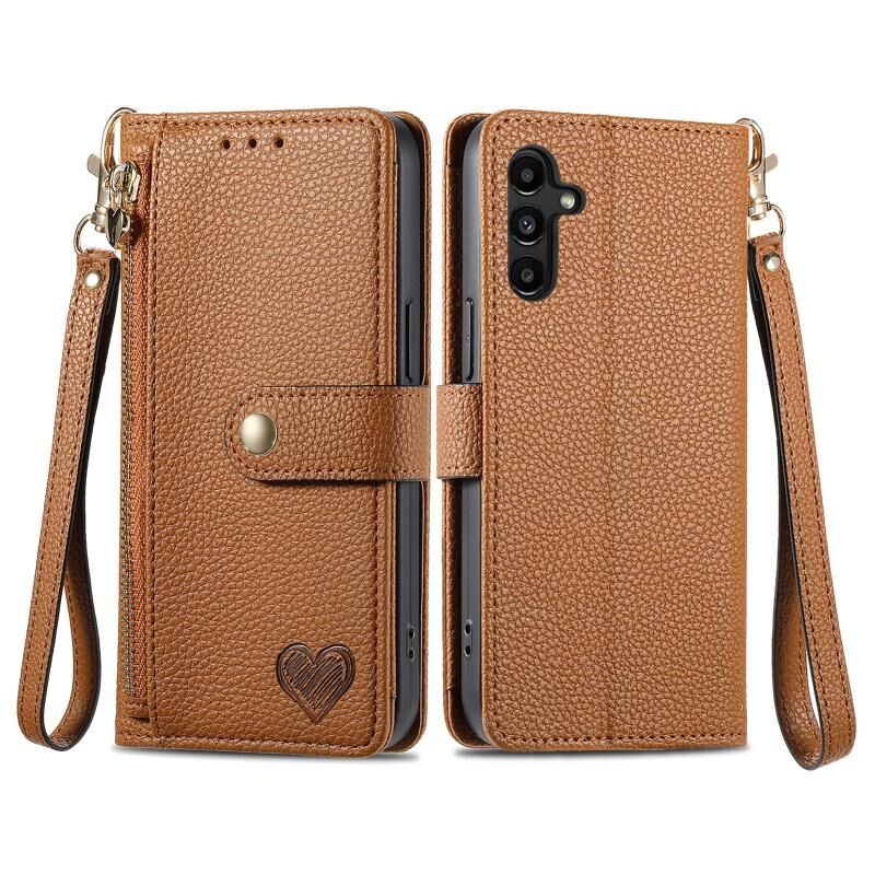 Για το Samsung Galaxy A13 5G αγάπη φερμουάρ Lanyard δερμάτινη θήκη τηλεφώνου (καφέ)