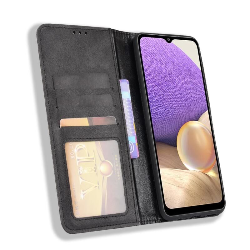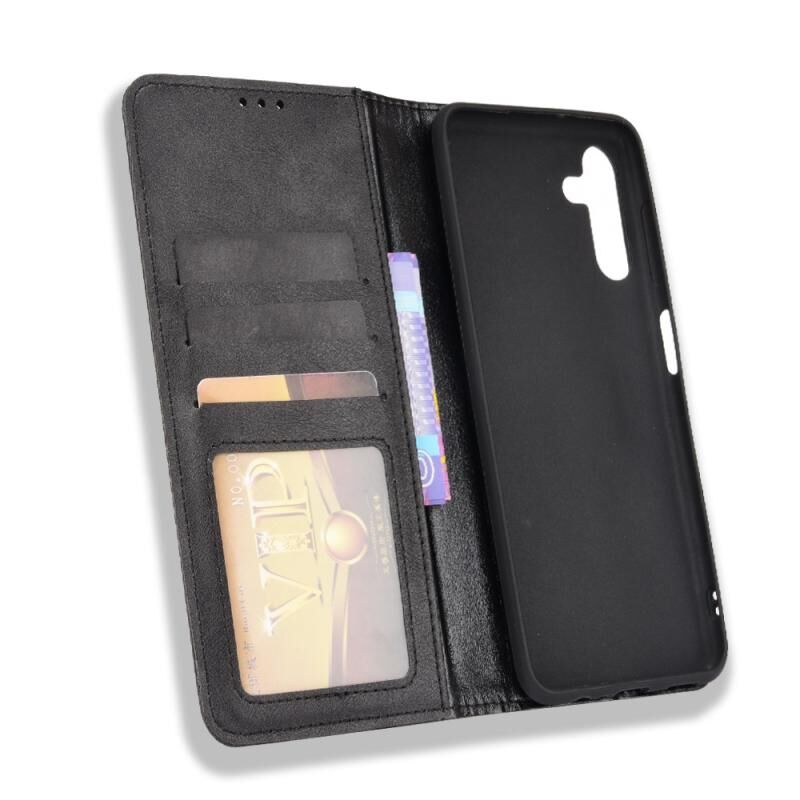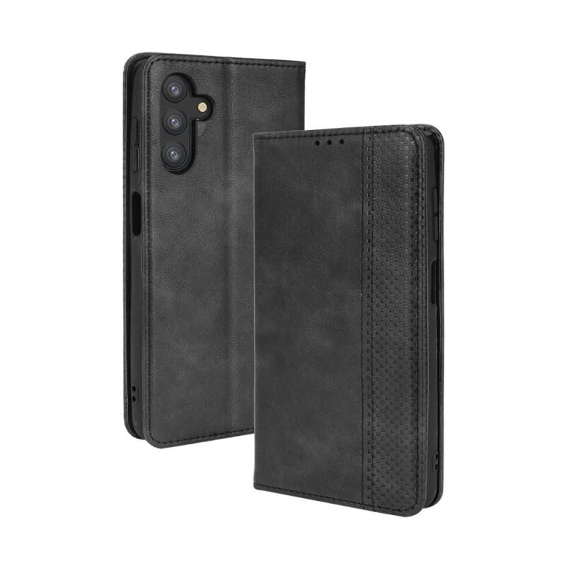 Για Samsung Galaxy A13 5G Μαγνητική πόρπη Retro Crazy Horse Υφή οριζόντια Flip τηλέφωνο δερμάτινη θήκη με υποδοχή & υποδοχές για κάρτες & πλαίσιο φωτογραφιών (Μαύρο)