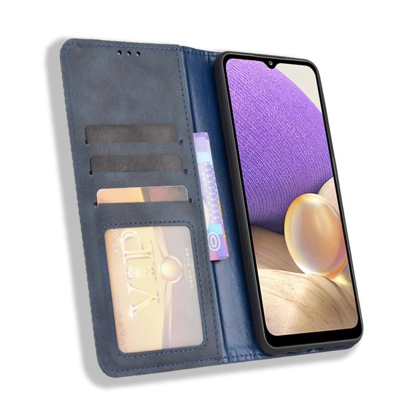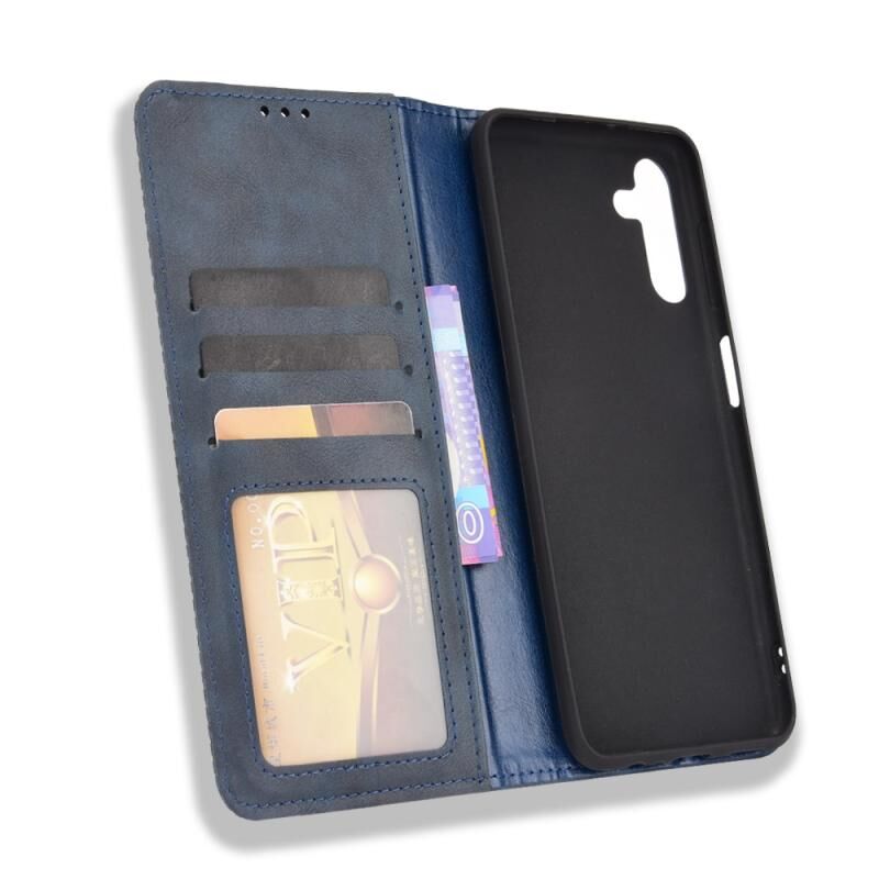 Για Samsung Galaxy A13 5G Μαγνητική πόρπη Retro Crazy Horse Υφή οριζόντια Flip τηλέφωνο δερμάτινη θήκη με υποδοχή & υποδοχές για κάρτες & πλαίσιο φωτογραφιών (Μπλε)