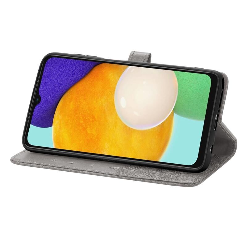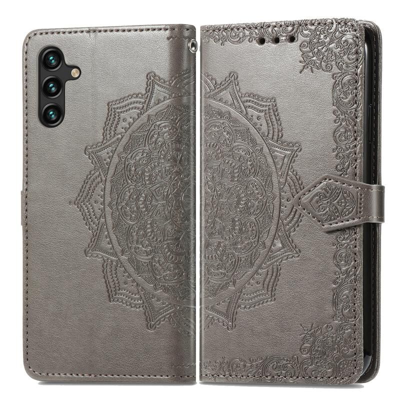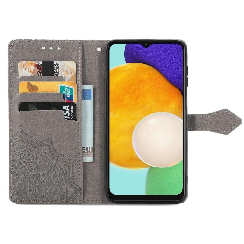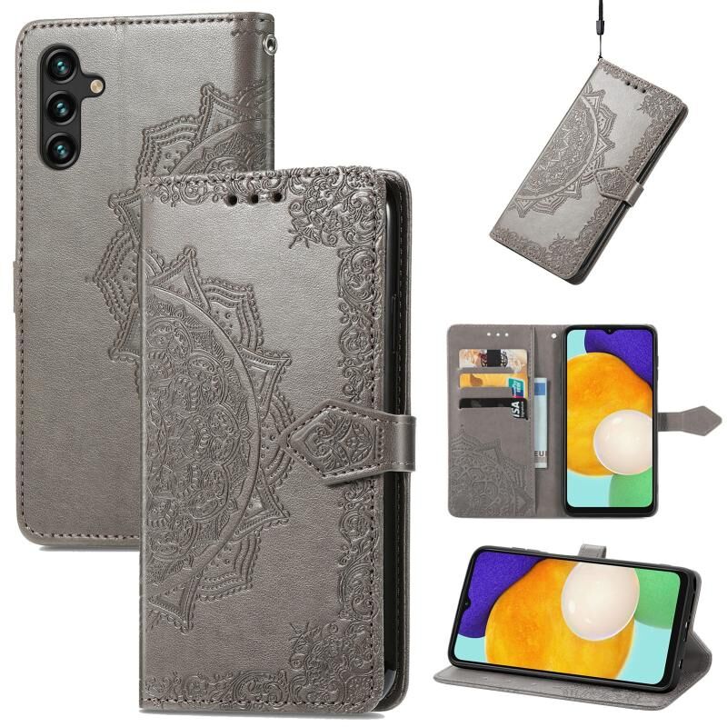 Για Samsung Galaxy A13 5G Mandala λουλούδι ανάγλυφο οριζόντια Flip δερμάτινη θήκη με θήκη & υποδοχές για κάρτες & πορτοφόλι & κορδόνι (γκρι)