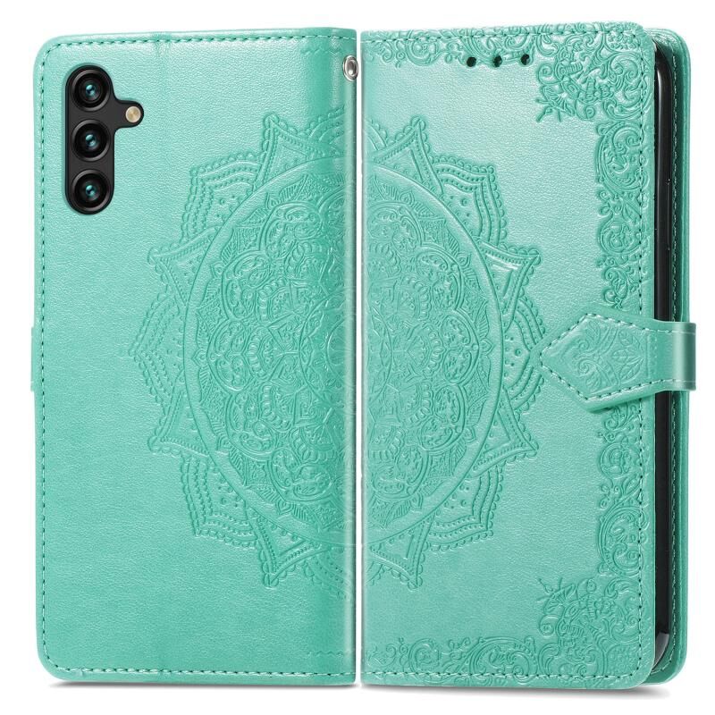 Για Samsung Galaxy A13 5G Mandala λουλούδι ανάγλυφο οριζόντια Flip δερμάτινη θήκη με θήκη & υποδοχές για κάρτες & πορτοφόλι & κορδόνι (πράσινο)