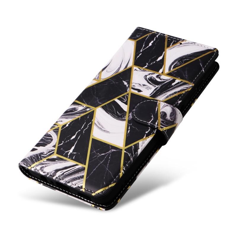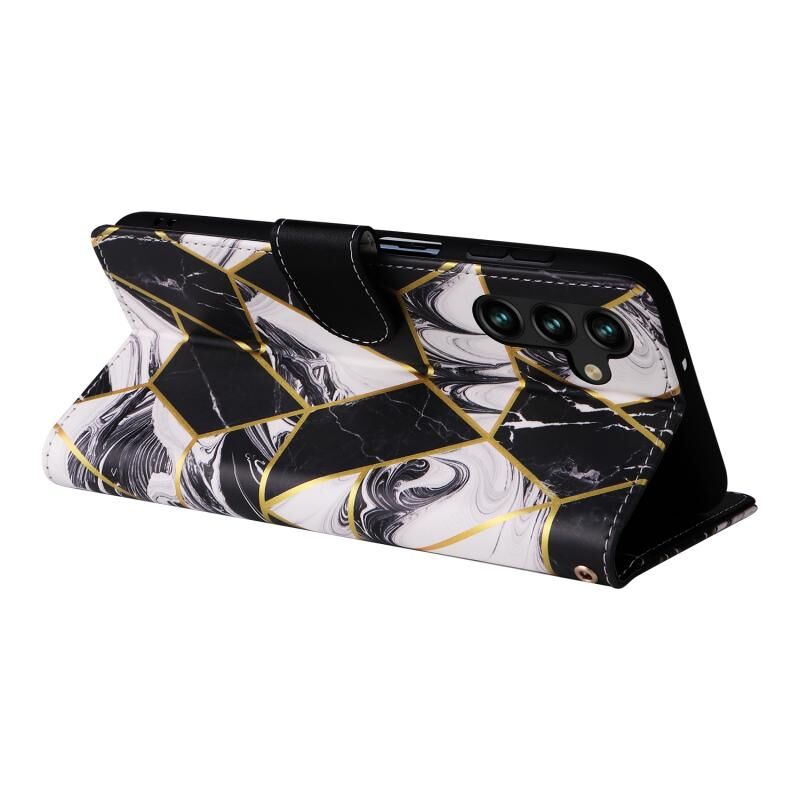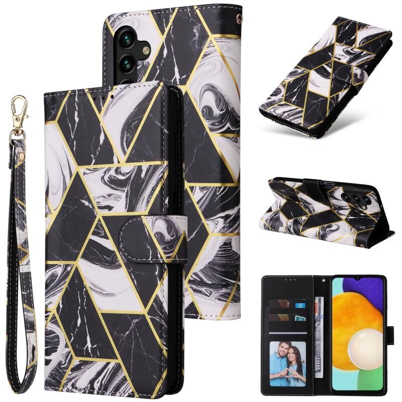 Θήκη τηλεφώνου Samsung Galaxy A13 5G από δέρμα με ραφή μαρμάρου και μπρονζέ φινίρισμα (Μαύρο)