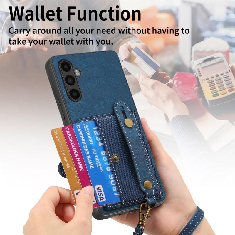 Για Samsung Galaxy A13 5G Retro Σταυρός Wristband πορτοφόλι δέρμα πίσω υπόθεση τηλεφώνου (Μπλε)