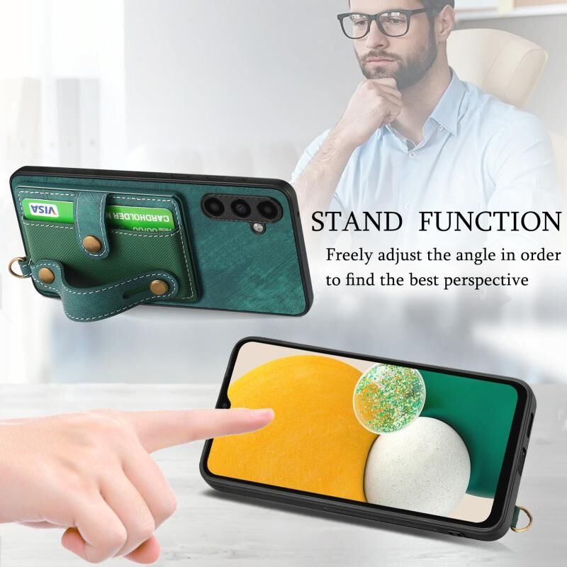 Για Samsung Galaxy A13 5G Ρετρό σταυρό Wristband πορτοφόλι δέρμα πίσω υπόθεση τηλεφώνου (πράσινο)