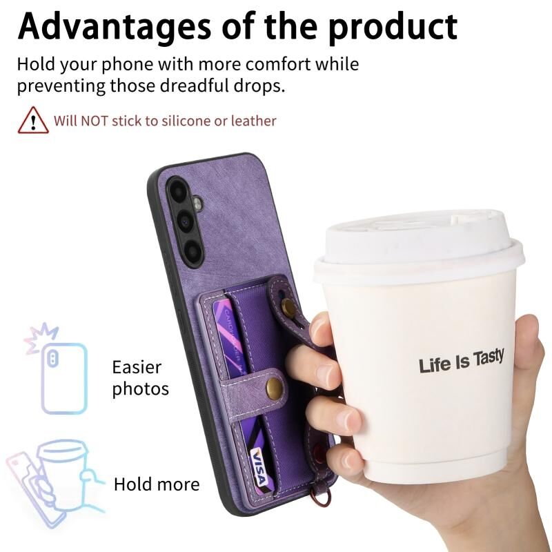 Για Samsung Galaxy A13 5G Retro Σταυρός Wristband πορτοφόλι δέρμα πίσω υπόθεση τηλεφώνου (Μωβ)