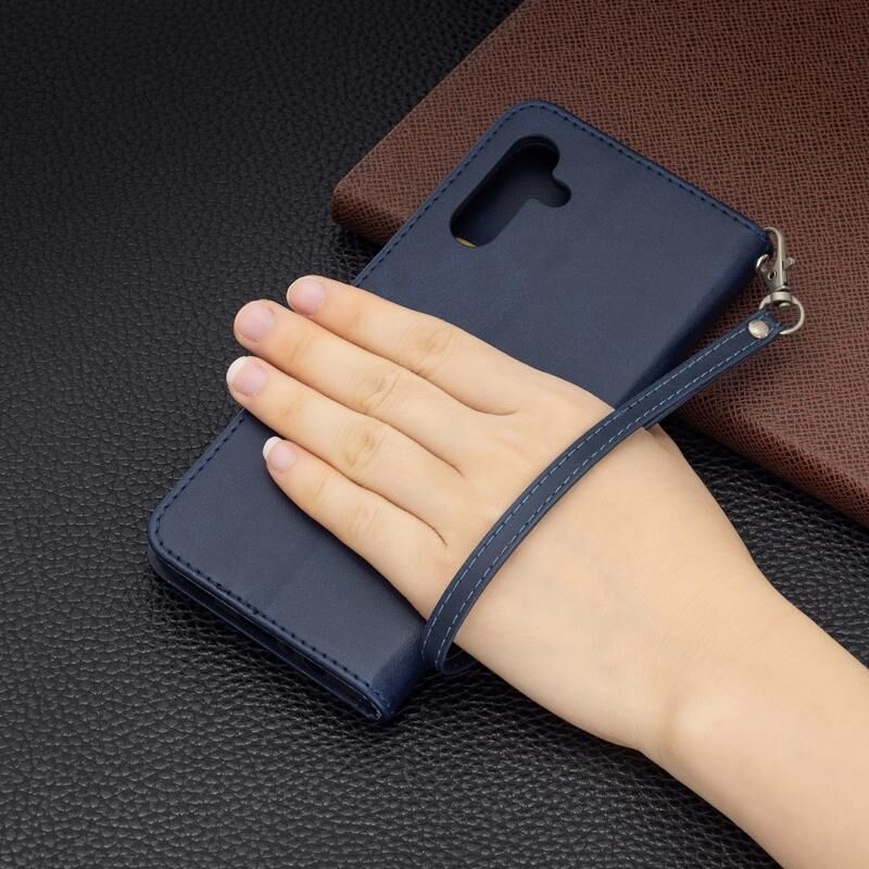 Για Samsung Galaxy A13 5G Retro Lambskin υφή καθαρό χρώμα οριζόντια Flip δέρμα τηλέφωνο υπόθεση με θήκη & υποδοχές για κάρτες & πορτοφόλι & Lanyard (μπλε)