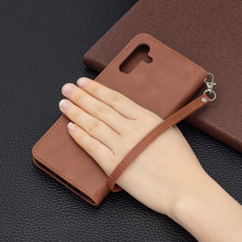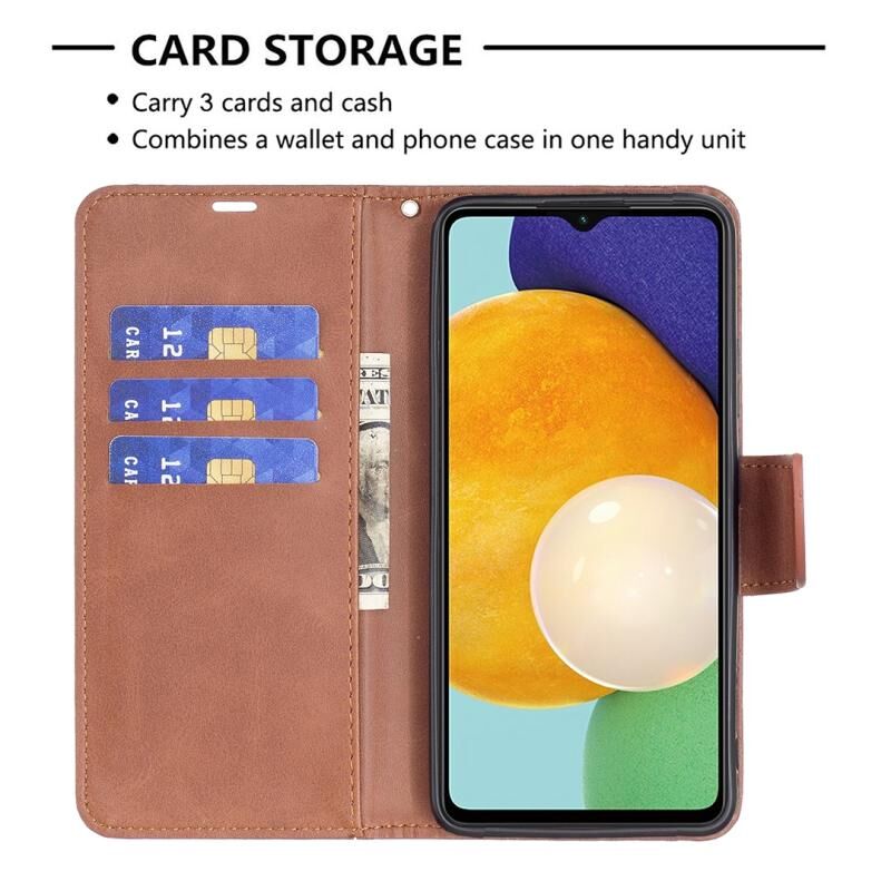 Για Samsung Galaxy A13 5G Retro Lambskin υφή καθαρό χρώμα οριζόντια Flip δέρμα τηλέφωνο υπόθεση με θήκη & υποδοχές για κάρτες & πορτοφόλι & Lanyard (καφέ)