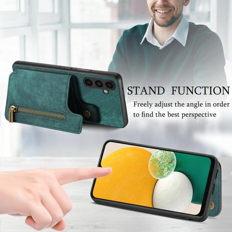 Για Samsung Galaxy A13 5G Ρετρό δέρμα φερμουάρ πορτοφόλι πίσω θήκη τηλεφώνου (πράσινο)