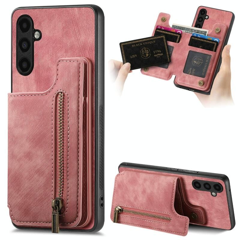 Για Samsung Galaxy A13 5G Ρετρό δέρμα φερμουάρ πορτοφόλι πίσω θήκη τηλεφώνου (ροζ)