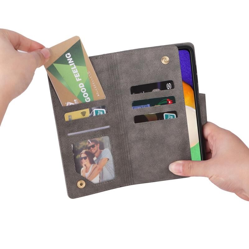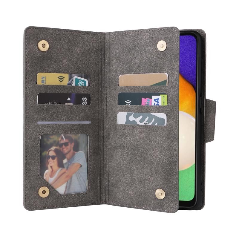 Για Samsung Galaxy A13 5G 5G Rivet πόρπη 9 κάρτες τρεις φορές δερμάτινη θήκη τηλεφώνου (γκρι)