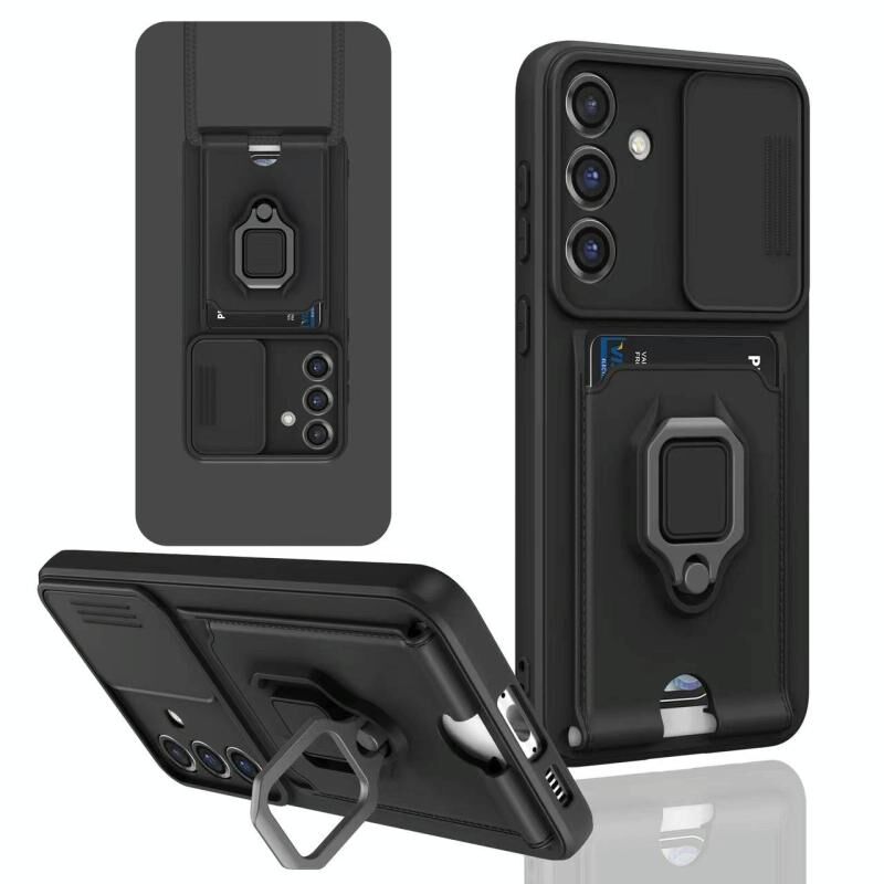 Για Samsung Galaxy A13 5G συρόμενη Camshield μαγνητική κάρτα κάτοχος σιλικόνης τηλέφωνο υπόθεση (Μαύρο)