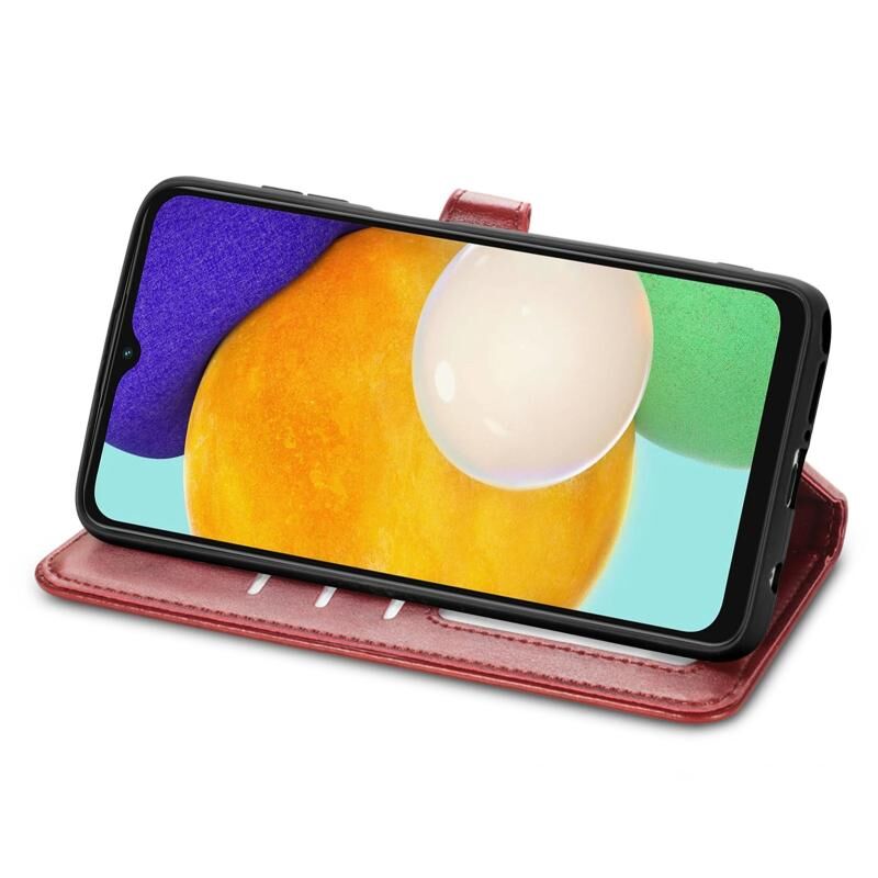 Για το Samsung Galaxy A13 5G Αμιγές χρώμα δερμάτινη θήκη τηλεφώνου με αγκράφα (Κόκκινο)