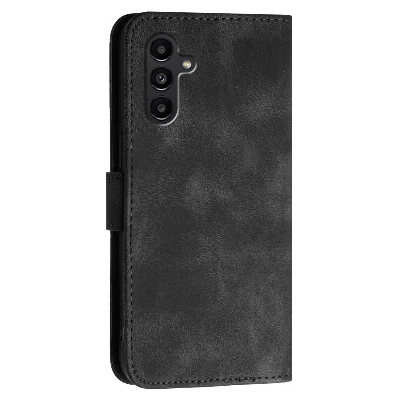 Θήκη τηλεφώνου Samsung Galaxy A13 5G YX0080, δερμάτινη, τύπου flip, με ανάγλυφο σχέδιο πλέγματος και πεταλούδας, με κορδόνι (Σκούρο Μπλε)