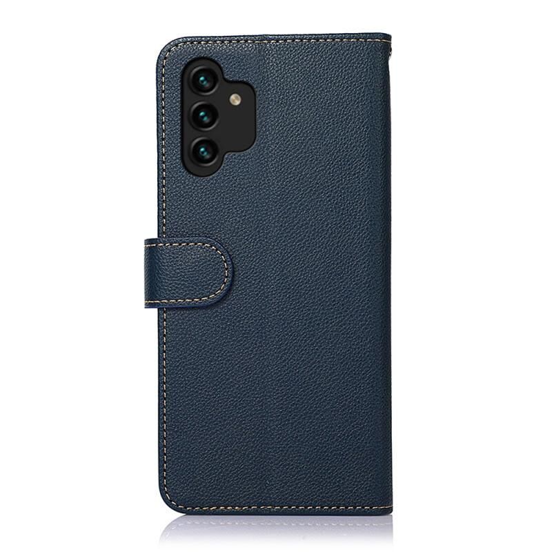 Θήκη κινητού Samsung Galaxy A13 KHAZNEH με υφή δέρματος Litchi και προστασία RFID (Μπλε)