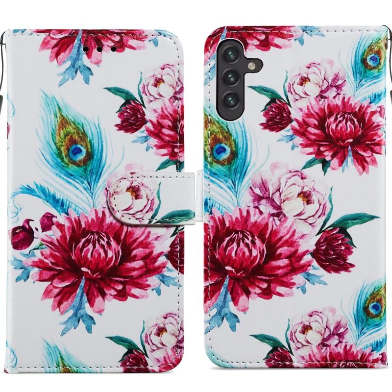 Θήκη τηλεφώνου Samsung Galaxy A13 από δέρμα με οριζόντιο άνοιγμα και ζωγραφιστό σχέδιο (Λουλούδι Παγωνιού)