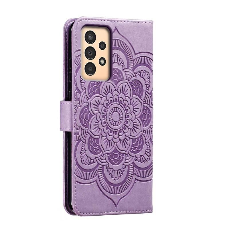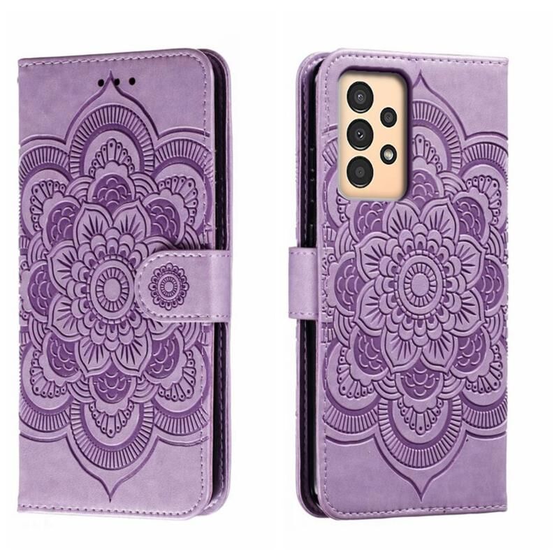 Για Samsung Galaxy A13 Sun Mandala ανάγλυφο μοτίβο τηλέφωνο δερμάτινη θήκη (μωβ)