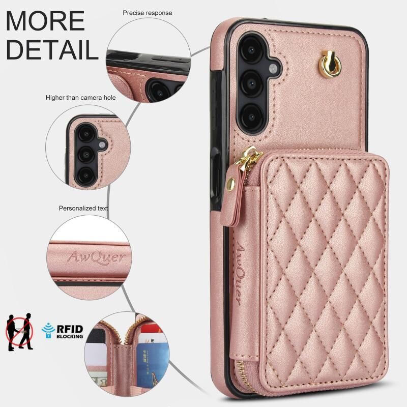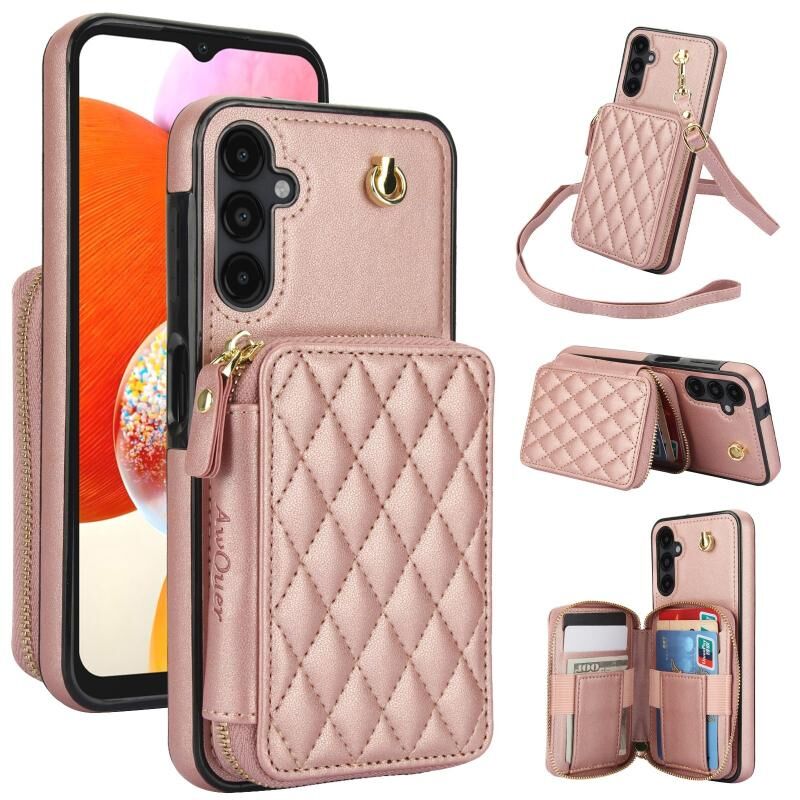Θήκη κινητού τηλεφώνου AwQuer Crossbody με φερμουάρ και δερμάτινη πλάτη σε ρόμβους για Samsung Galaxy A14 4G / 5G (Μαύρο) (Awquer)