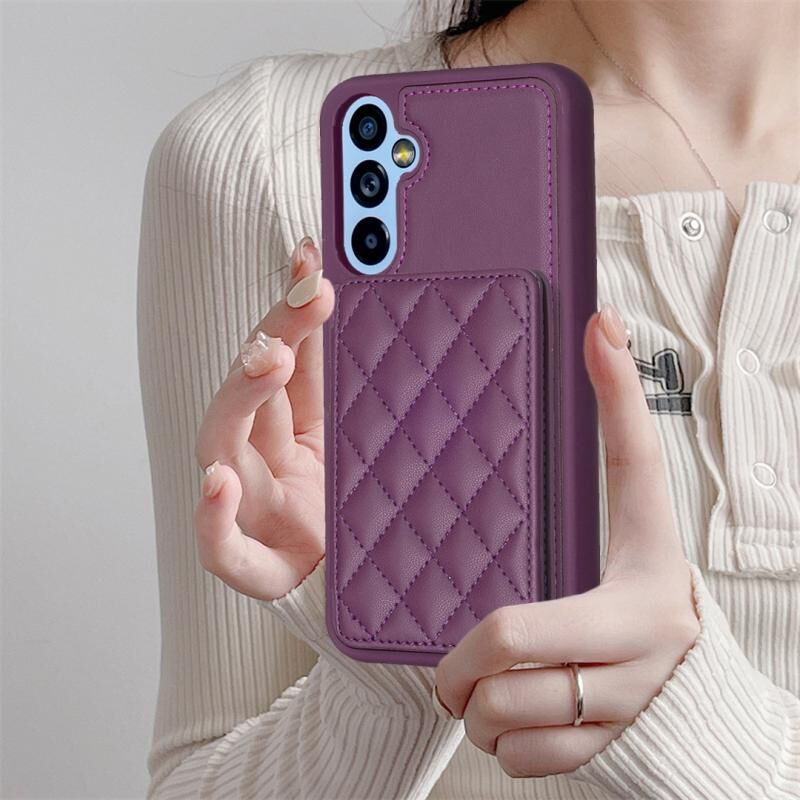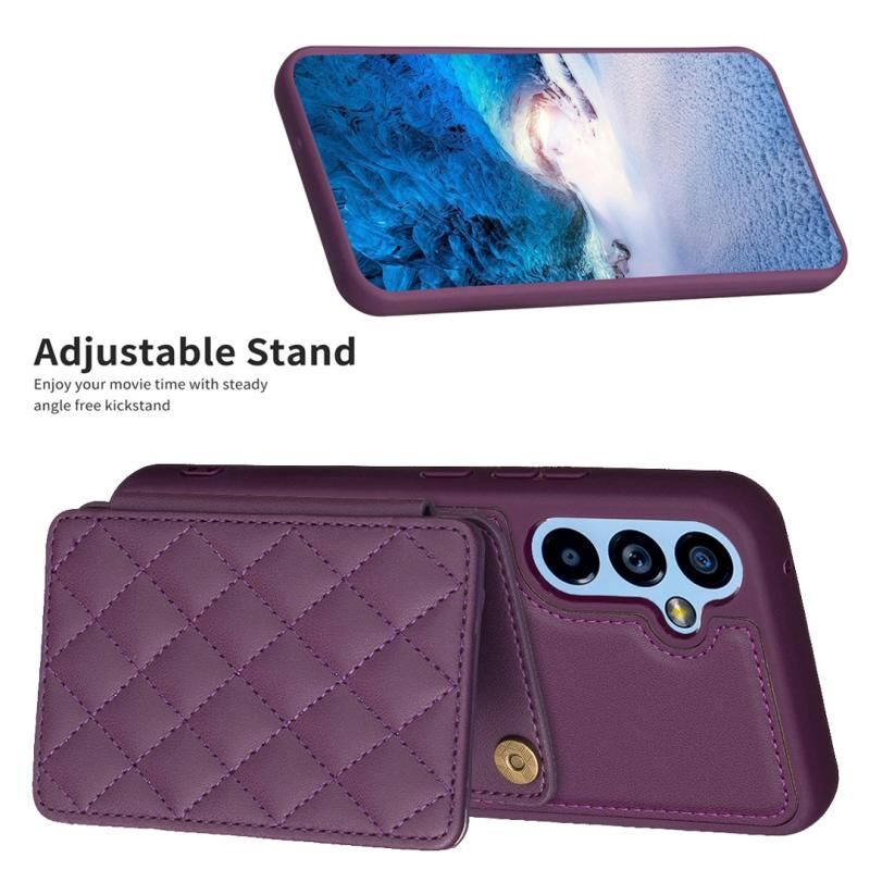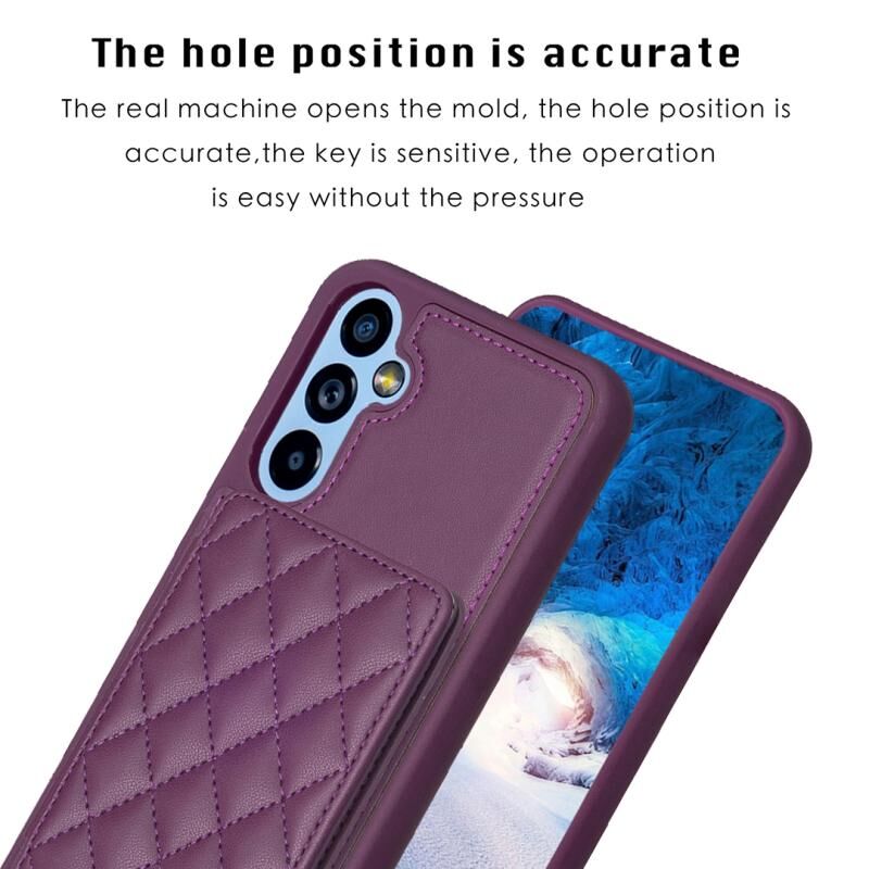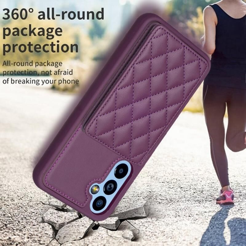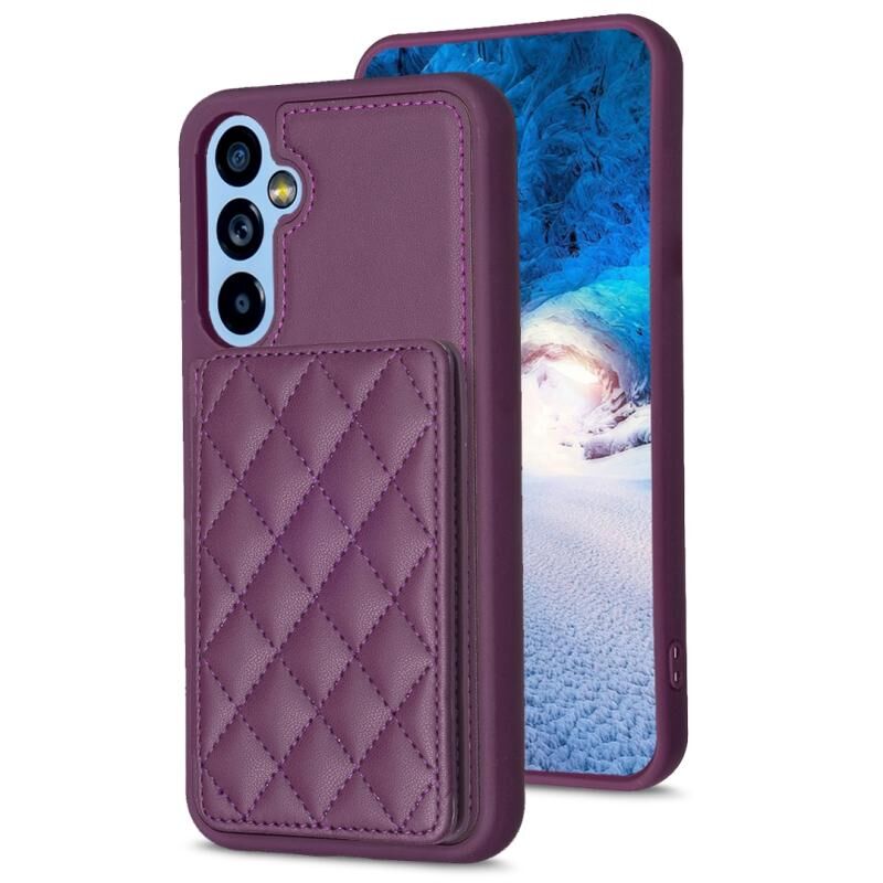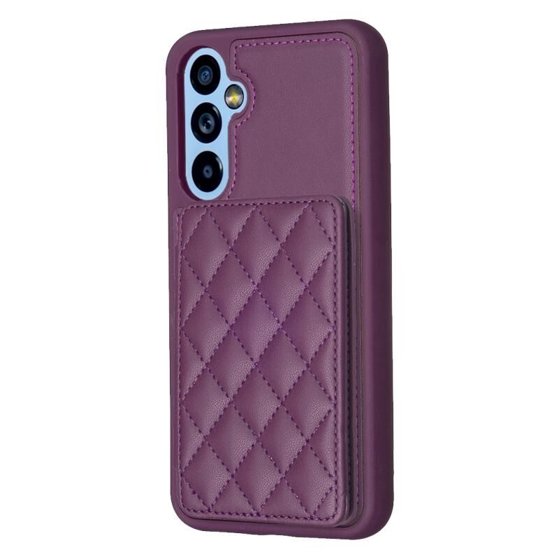 Για Samsung Galaxy A14 4G / 5G BF25 τετράγωνο καρό τσάντα κάρτα κάτοχος υπόθεση τηλεφώνου (σκούρο μωβ)