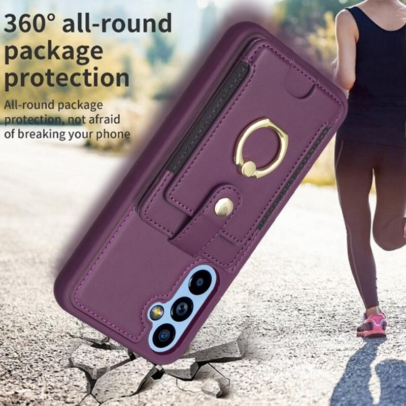 Για Samsung Galaxy A14 4G / 5G BF27 Μεταλλικό δαχτυλίδι τσάντα τσάντα κάτοχος υπόθεση τηλεφώνου (σκούρο μωβ)