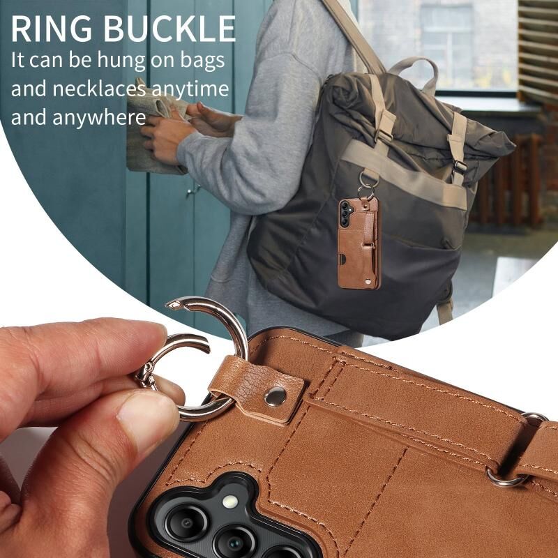 Για Samsung Galaxy A14 4G/5G Calf υφή καρπού κάρτα Slot Ring υπόθεση τηλεφώνου (Καφέ)